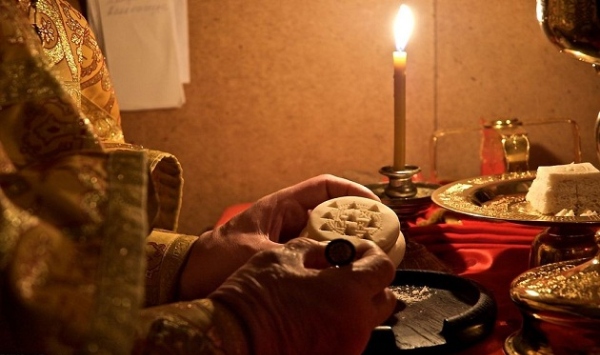 Η προετοιμασία της θείας μετάληψης στην πρόθεση (λεπτομέρειες εδώ)